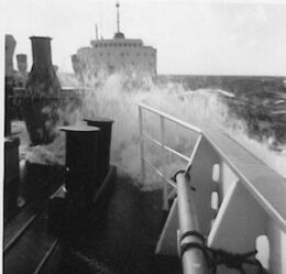 Schon beim Auslaufen ging es los – meine Boy’s waren ganz offensichtlich Seekrank geworden. Und die Küche hatte nur eine einzige Tür (Schott) die nach aussen führte! Oh, welch ein gedränge, denn mehr als einer ging da nicht durch das enge Loch. Alle drei füttern die Fische gut und reichlich Der zweite, der dritte Steward, der Bäcker,sie alle hatten es höchst eilig, auf’s Deck raus zu kommen! Und der Chiefsteward konnte sich ein gemeines lächeln nicht verkneifen. Und ganz offensichtlich wartete er nur darauf, dass auch ich Fische füttern ging! Aber doch nicht ich! Diese Freude wollte und konnte ich ihm nicht machen. Tatsächlich bin ich niemals Seekrank geworden worauf ich auch recht stolz war. Ein vielleicht nützlicher Tipp; beim bemerken eines mulmigen Gefühls in der Magengegend, trank ich einen Whyski. Das hat immer sehr gut und nachhaltig geholfen!